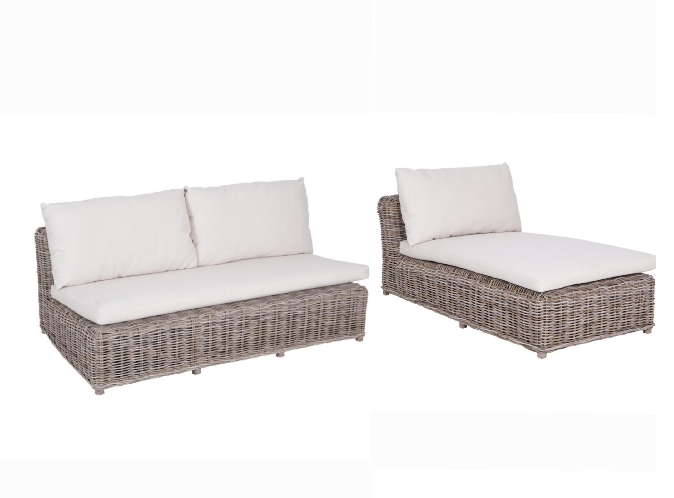 Juego de Rattan Natural, compuesto de 1 Módulo de 2 cuerpos y 1 Módulo Chaiselongue.
